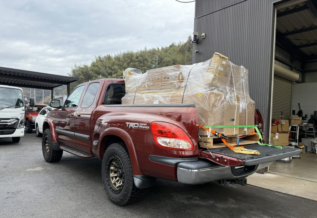 ロサンゼルスからの今年最後の部品の入荷です タンドラ&ダッジ・リアバンパーX2本・T100フロンバンパーx2本 タンドラ純正ヘッドライト左右・グリルX2・テールランプ左右 その他・パレット1.5 ...
